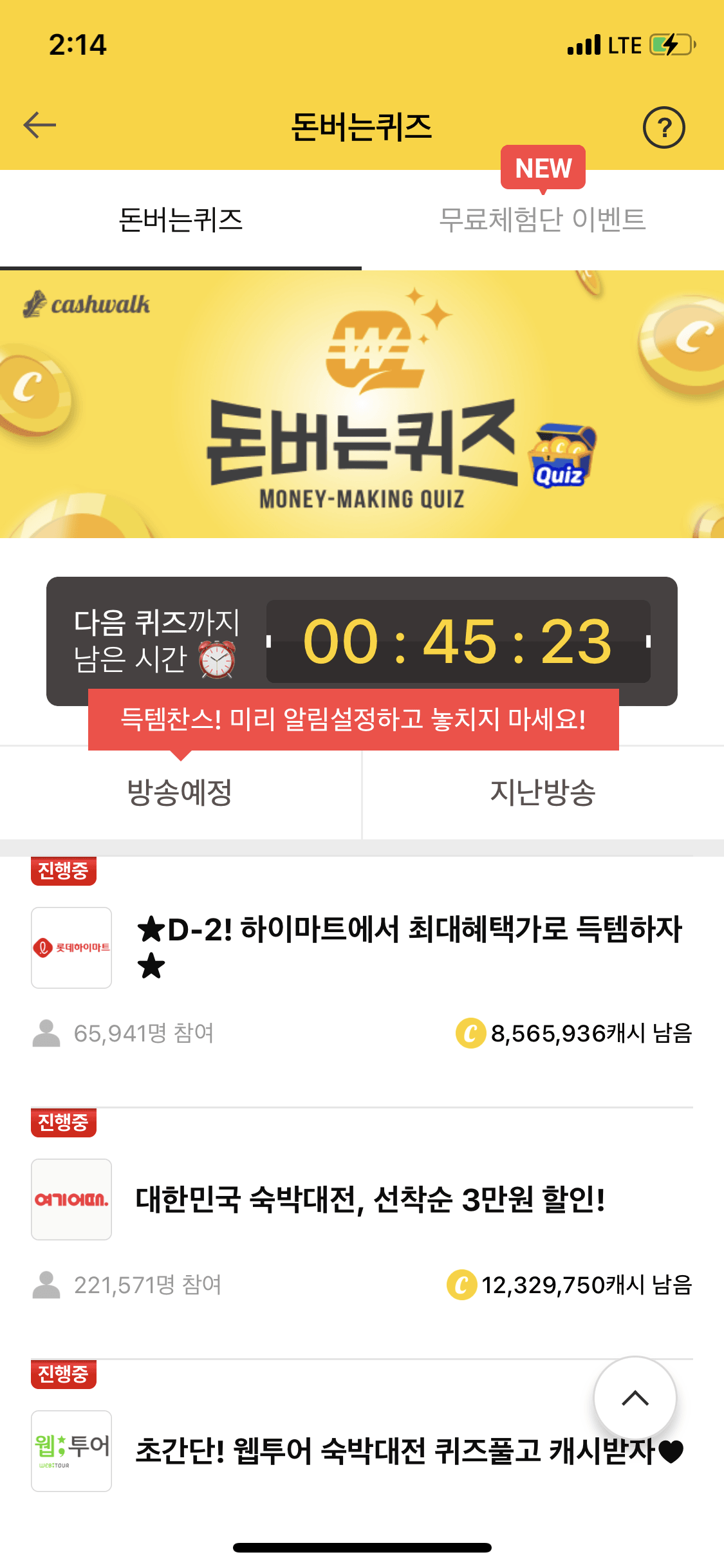 캐시워크 <웹투어 숙박대전> 3분만에 받기