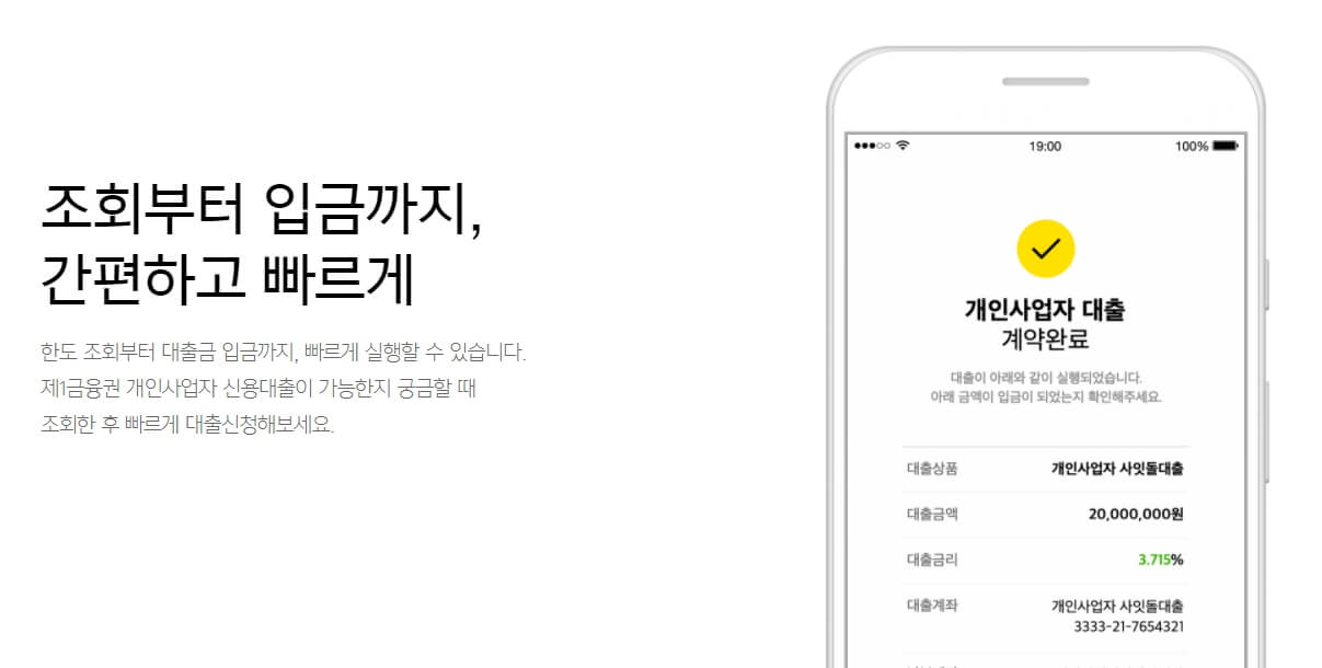 카카오뱅크 개인사업자 대출은 바쁜 사업자를 위해서 온라인으로 간편하게 신청할수 있도록 만든 제1금융권 신용대출입니다. 조회부터 입금까지 간편하면서도 빠르게 진행된다는 점이 장점입니다.