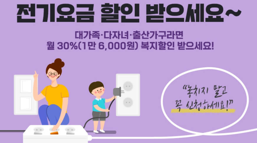 전기요금 할인은 가족구성이 많은 대가족이나 3인 이상 다자녀 가구에게도 유용한 정보입니다.