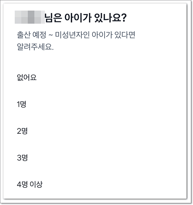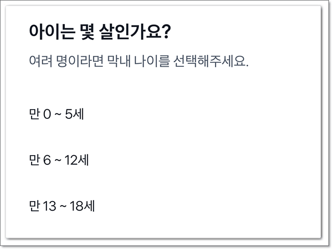 출산 예정이거나 미성년자 아이가 있다면 몇 명인지 선택하고, 막내의 나이도 선택하여 줍니다.