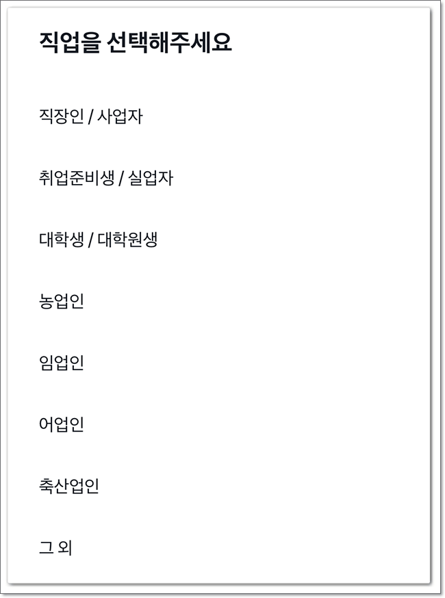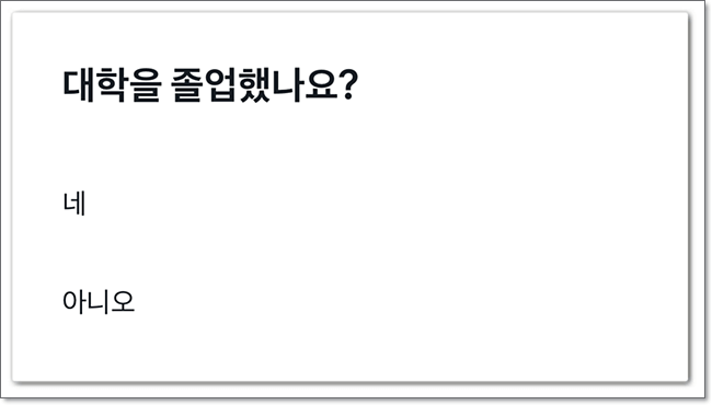 자신의 직업 및 대학 졸업여부를 선택하여 눌러줍니다.