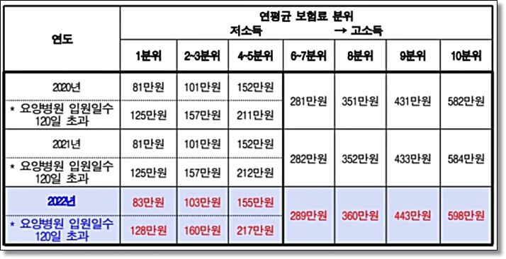자신의 본인부담 상한이 얼마인지는 아래 표를 참고하시기 바랍니다.